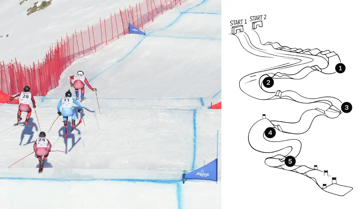 Le ski cross / snow cross est une discipline fun et spectaculaire, avec un parcours composé de virages relevés, bosses, sauts et passages techniques.